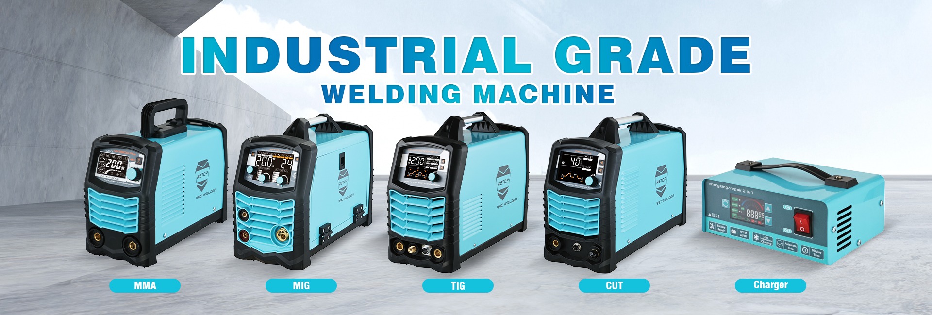 मुख्य उत्पादों: वेल्डिंग मशीन, कटिंग मशीन, बैटरी चार्जर, एयर कंप्रेसर, स्प्रे बंदूक